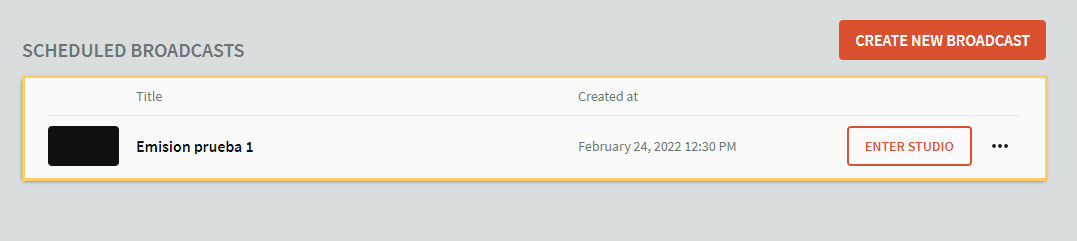 Para poder iniciar la emisión, hay que acceder al botón de: "Enter Studio", que aparecerá al pasar el ratón por encima.